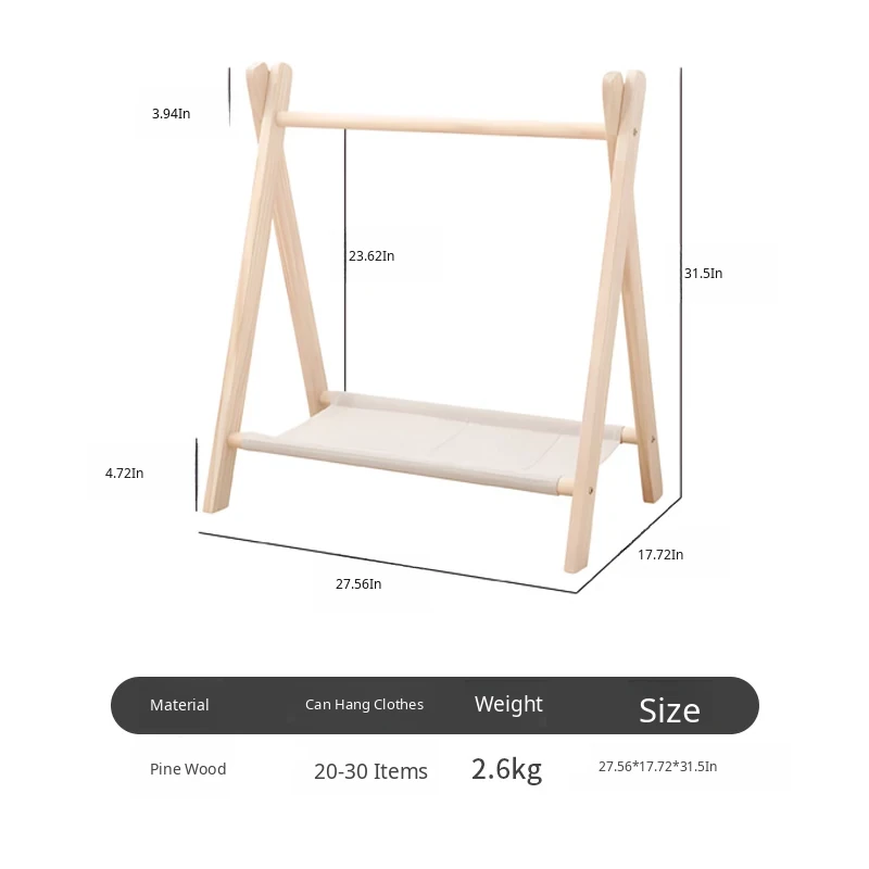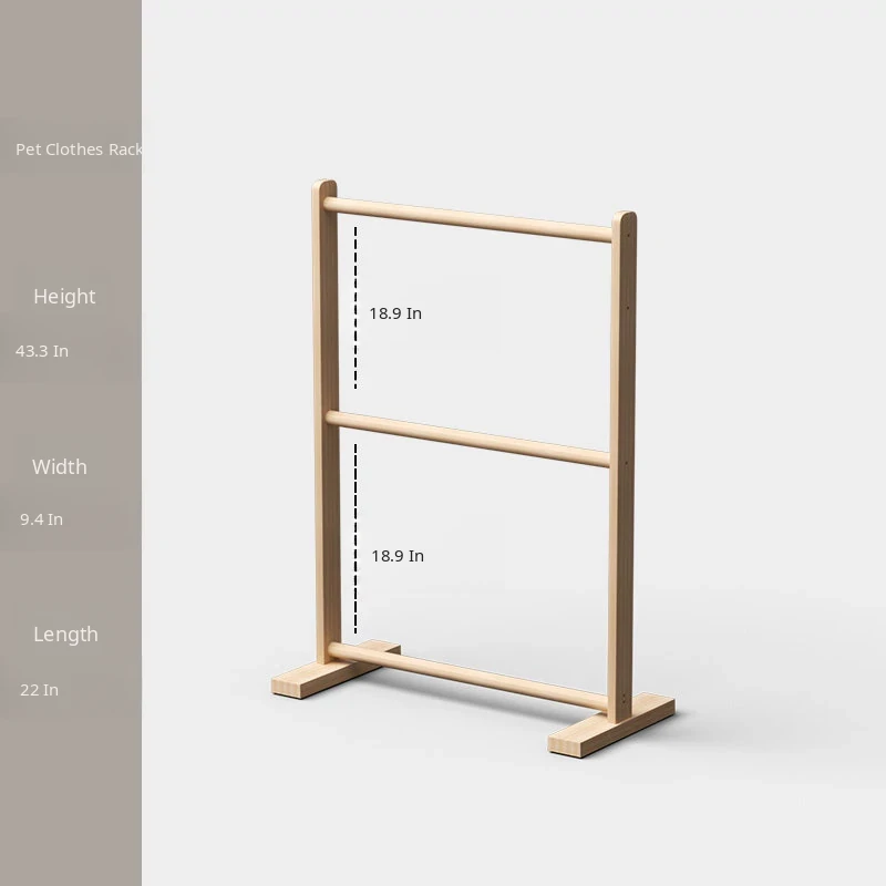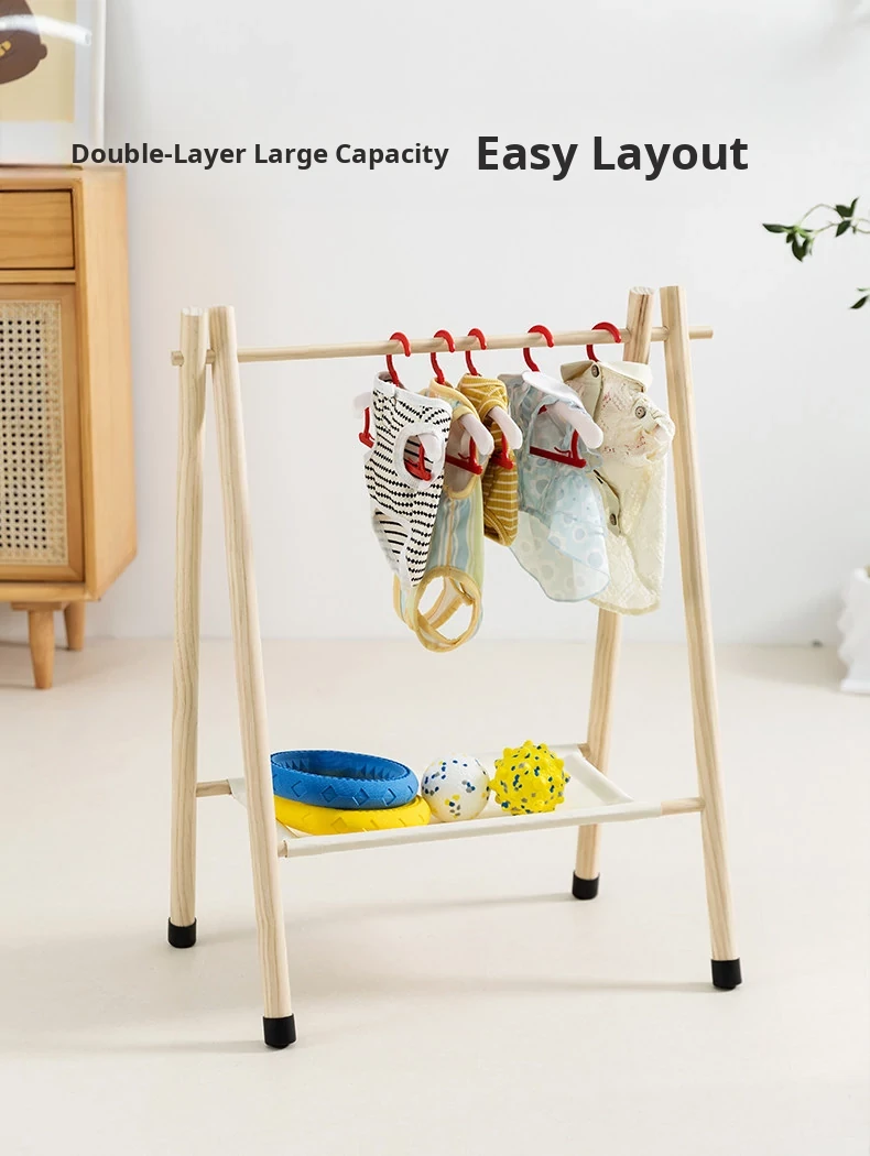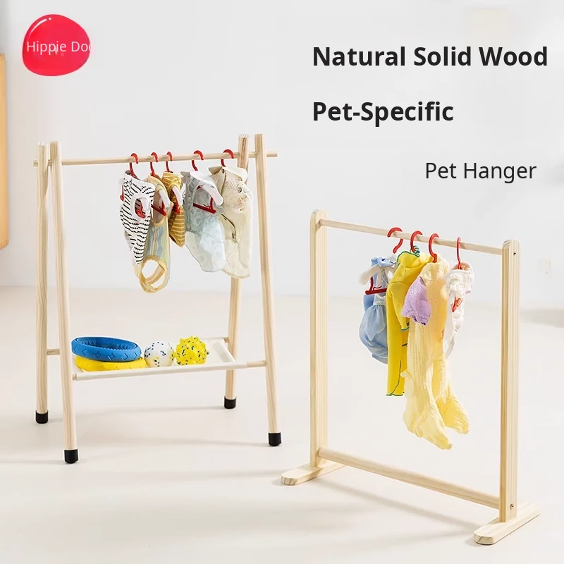 Hippie Dog Solid Wood Pet Clothes Rack - Floor Standing Wardrobe for Dogs and Cats, Stylish and Functional Clothing Storage Organizer for Small Pets