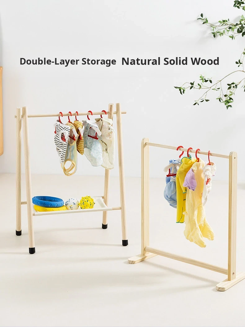 Wood Color # Scln # Simple Floor-Standing Clothes Hanger (Double Layer)