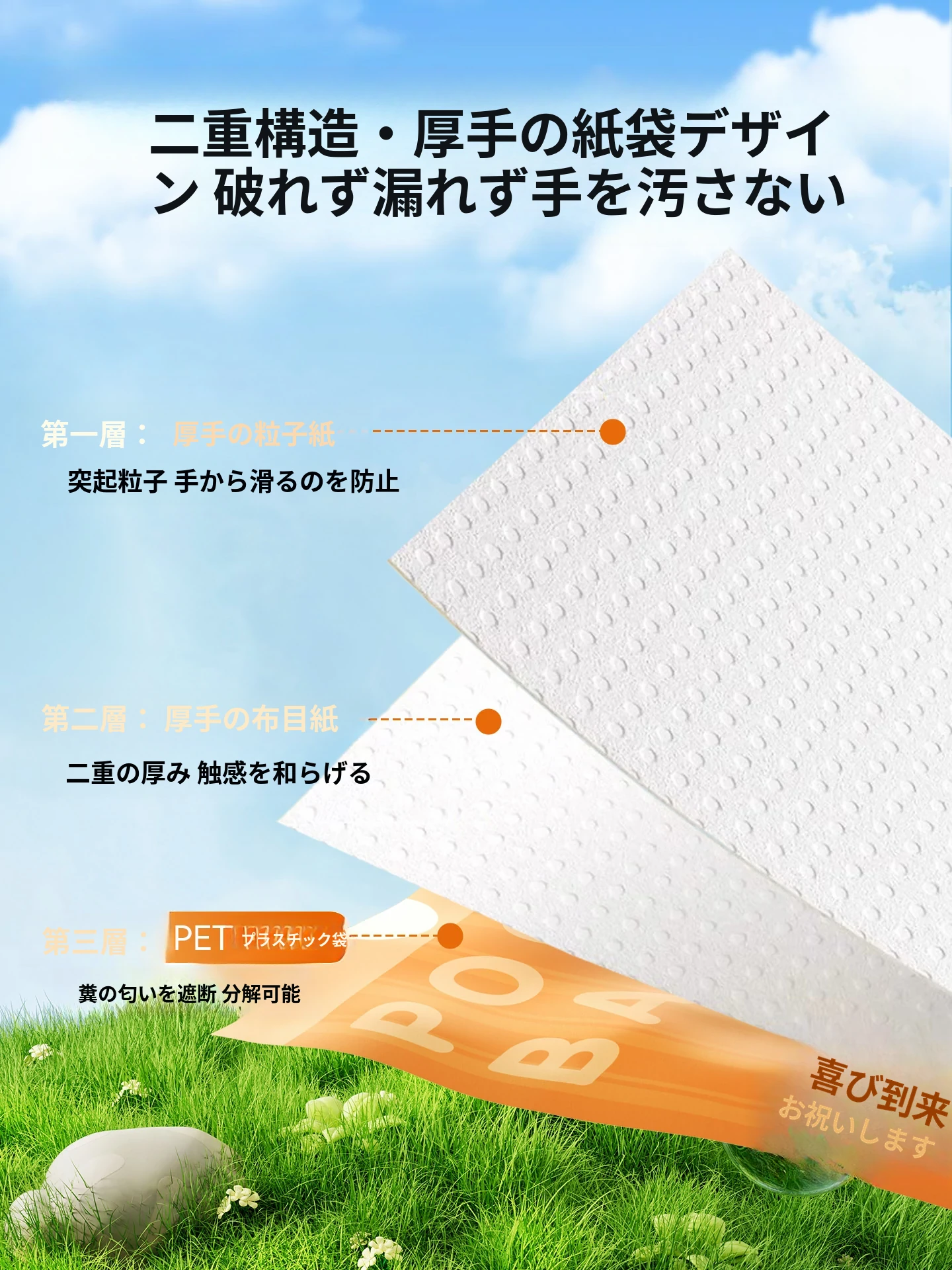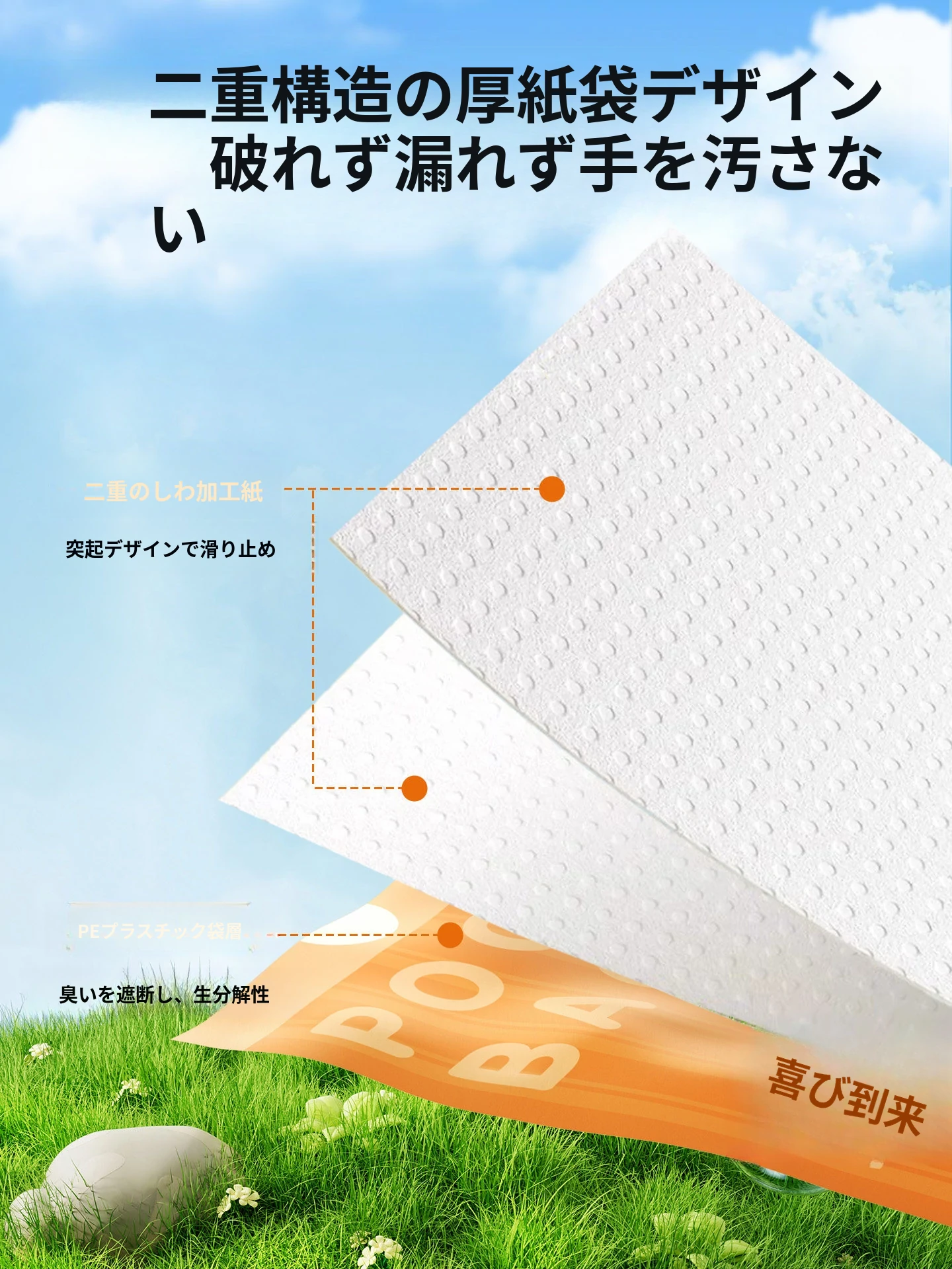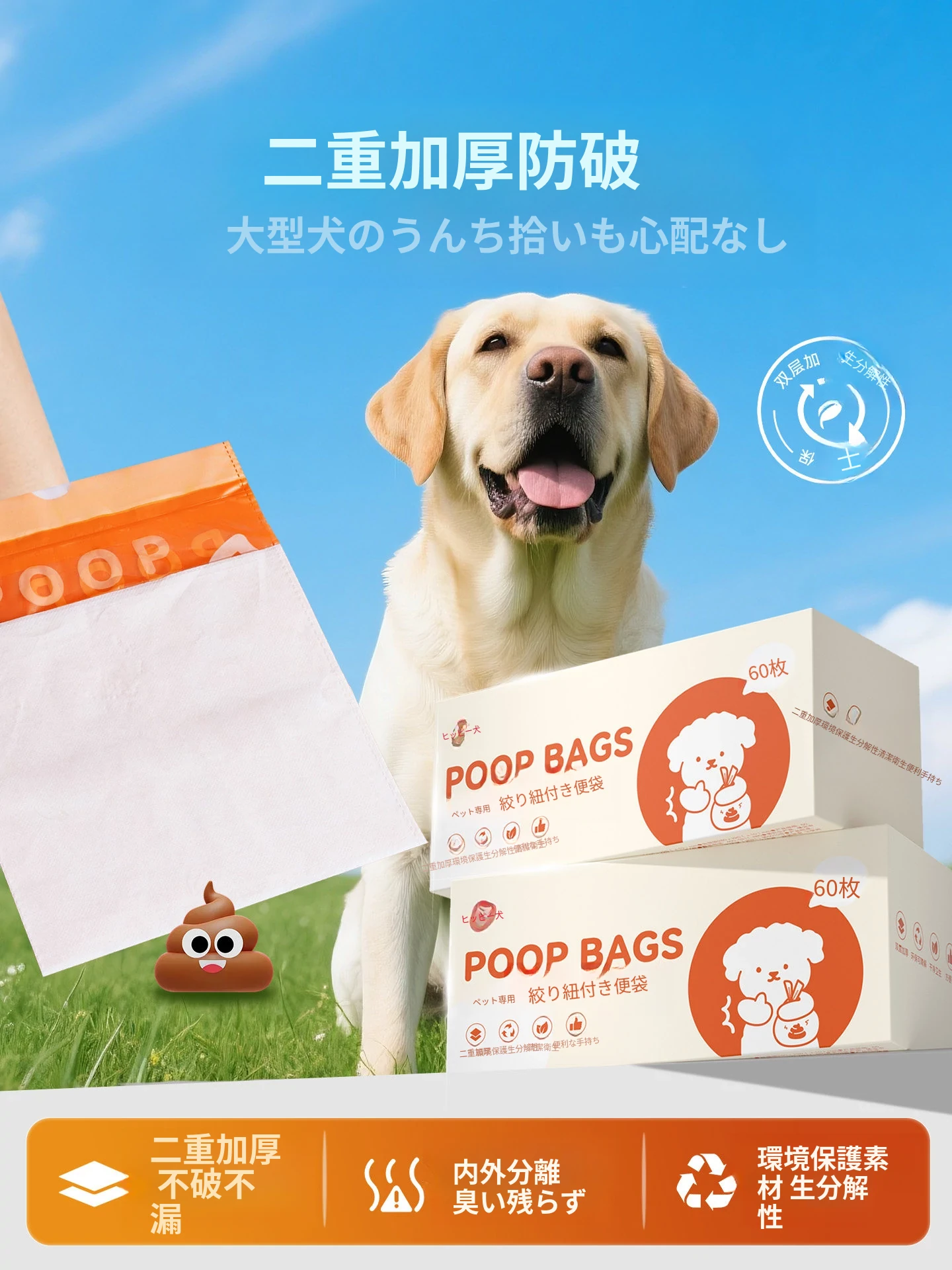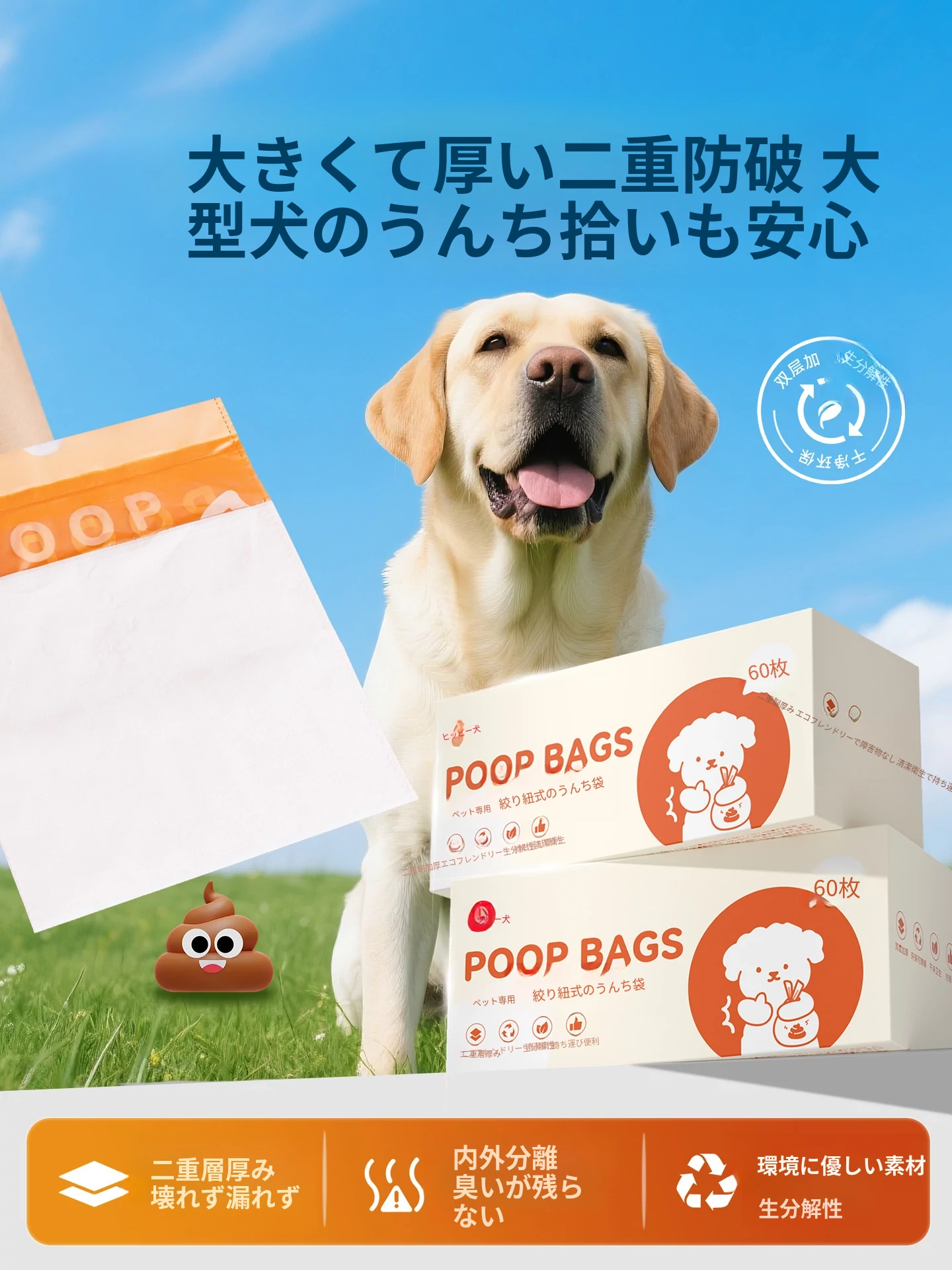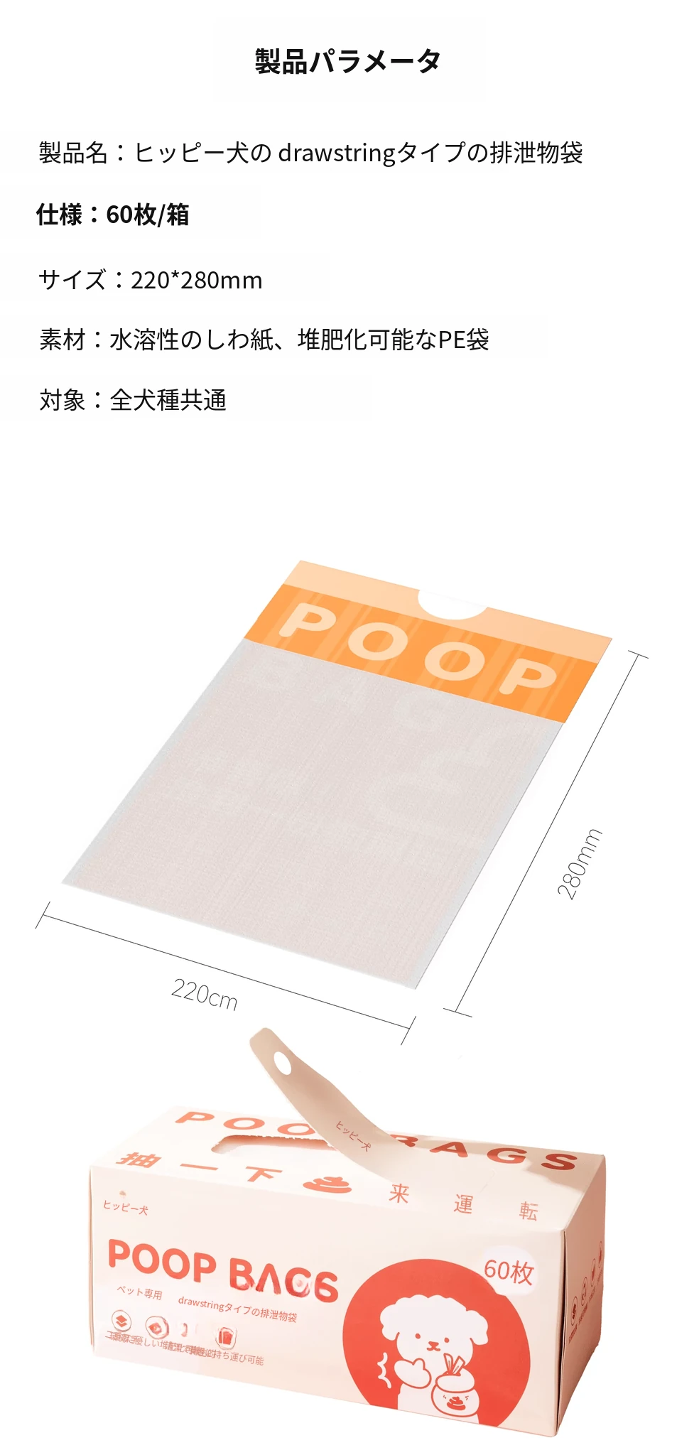 犬用うんち袋 ペットのための便利なゴミ袋!散歩中の愛犬のために、使い捨てで簡単に清掃!お散歩がもっと快適に!環境に優しい素材使用で安心。