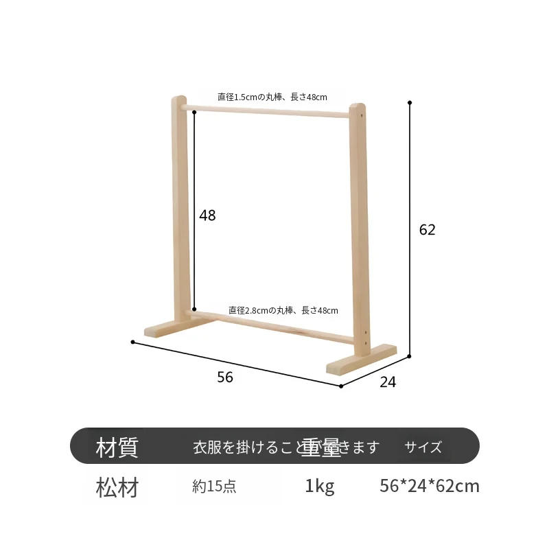 ナチュラルウッドカラー#scln#シンプルなスタンディングハンガー(1段)