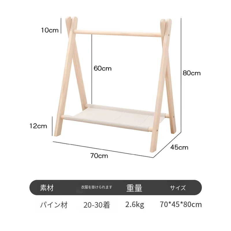 ヒッピー犬のための無垢材ペット専用ハンガーラック!おしゃれな犬猫用衣類収納スタンド、小型ペットにぴったりで、お部屋をスッキリ整頓。愛するペットのために、快適なおしゃれ空間を演出しませんか?