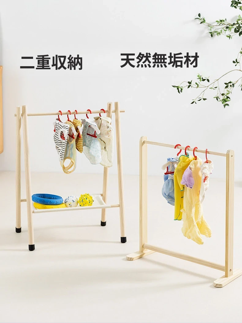 ナチュラルウッドカラー#scln#シンプルなスタンディングハンガー(2段)